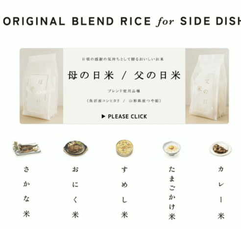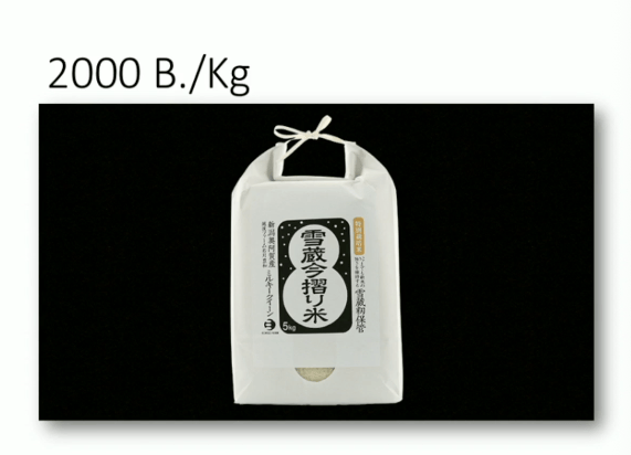 ตัวอย่าง ข้าวอิจิโก๊ะ ฟาร์ม ข้าวออแกนิก โดยปลูกแบบธรรมชาติ ไม่ใส่ปุ๋ย ไม่ใส่ยาฆ่าแมลง และน้ำจากการละลายน้ำแข็ง ที่นาสามารถเก็บเกี่ยวได้เพียง 120 kg ใช้การเก็บเกี่ยวโดยใช้เคียวเกี่ยวข้าว และใช้คนสีข้าว และมีการเก็บรักษาข้าวโดยใช้หิมะ เก็บรักษา โดยจะสีข้าวสดใหม่ และจะสีข้ามตามสั่งเท่านั้น ส่งผลให้ข้าวมีความสดใหม่ ทำให้คู่แข่งเลียนแบบได้ยากมาก เนื่องจากมีความแตกต่างมาก และขายได้ราคาสูงมาก