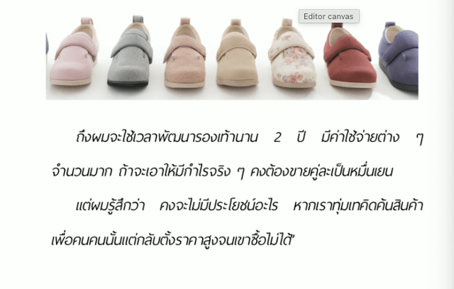 อีกหนึ่งตัวอย่าง คือ อยากจะช่วยผู้สูงอายุ โดยทำการสำรวจเป็นเวลาสองปี โดยพยายามหาจุดอ่อน และความต้องการที่ตอบสนองลูกค้า และมีการเพิ่มความสามารถขายสินค้าโดยขายรองเท้าทีละข้าง เนื่องจากเท้าคนแก่บวมและต้องใส่รองเท้าที่ใม่เหมือนกัน