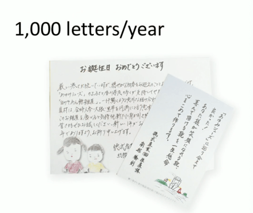 อีกหนึ่งตัวอย่าง เคเซนนุมา นิทติง sweather ช่วยเหลือภรรยาของชาวประมง ที่พัฒนาลายเสื้อ และเส้นใยพิเศษที่มีน้ำหนักเบาและใส่แล้วอุ่น และมีแนวทางการให้คนซื้อและคนทำต้องมีการอบรม และมีการ custom ขนาดสินค้า โดยมีการสร้างคุณค่าของผลิตภัณฑ์ โดยการใส่ใจในการโดยมีการส่ง postcard จากคนถักเสื้อ และมีการใส่หน้าคนถัก และจดหมายมาจากคนถักด้วย และเป็นสื่อต่อคนทำ และคนรับ แสดงให้เห็นถึงความแตกต่างได้ (https://readthecloud.co/iine-1/)